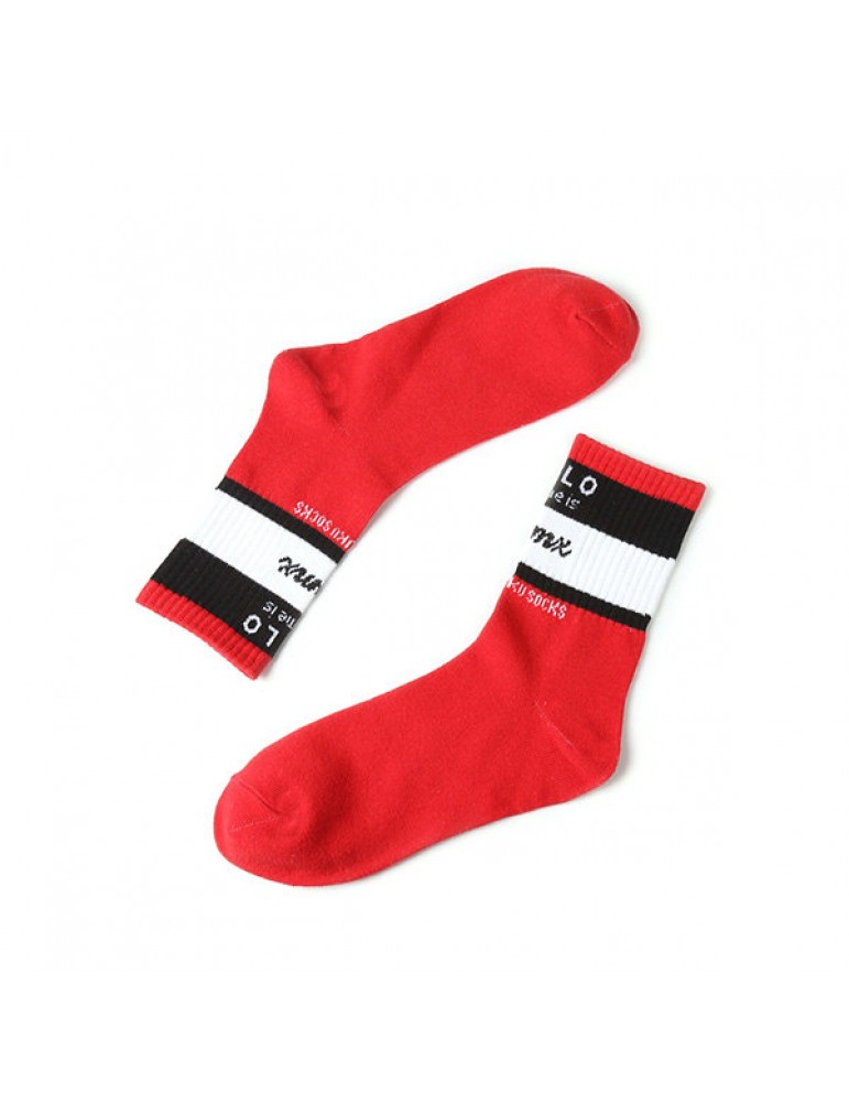 Women Autumn Warm Cotton Socks Elastic Stripes Dance Middle Tube Socks
